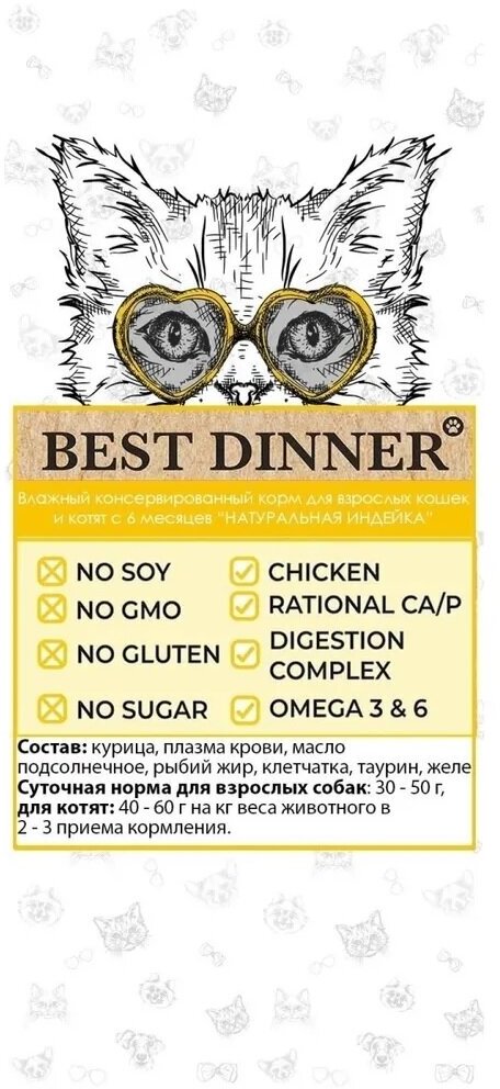 BEST DINNER 100гр Для кошек,натуральная перепёлка