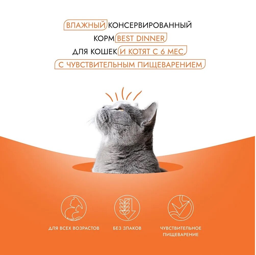 Консервы Best Dinner High Premium для любых кошек. Натуральная перепёлка (12шт*100гр) 2 052 ₽ Подробнее