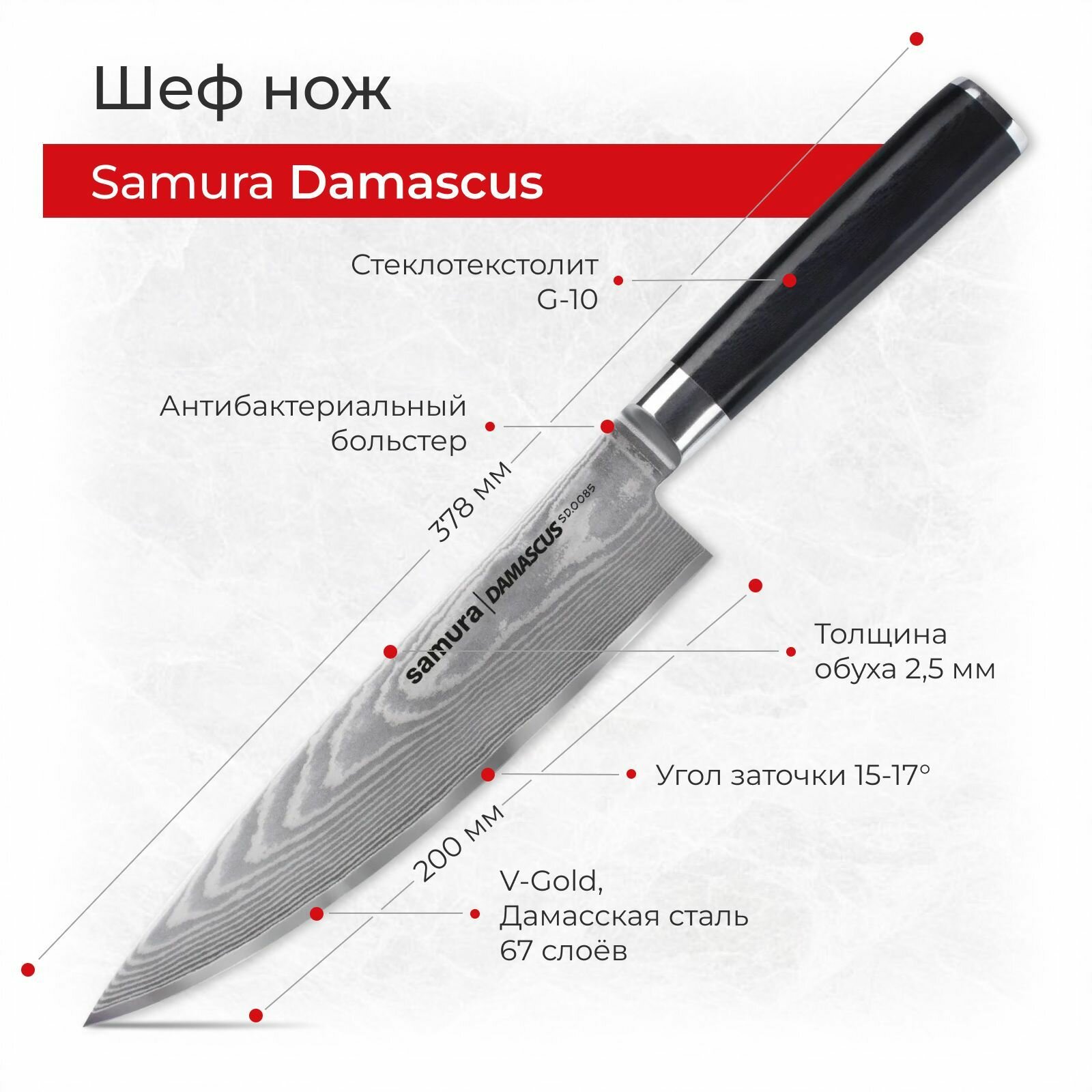 Набор ножей Набор кухонных ножей Samura Damascus поварская тройка / овощной нож / универсальный нож / шеф нож / SD-0220/G-10
