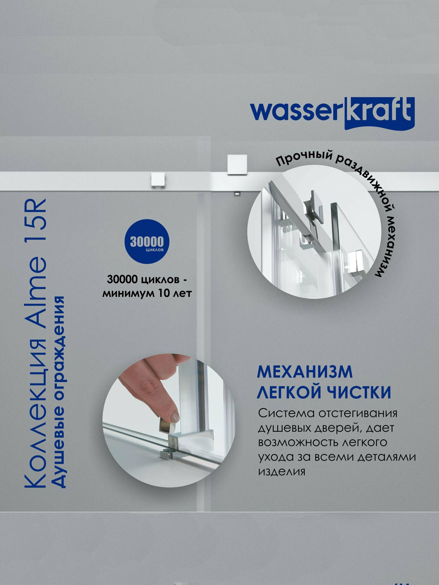 Душевая кабина Душевой уголок, хром, прозрачное стекло, WasserKRAFT Alme 15R06