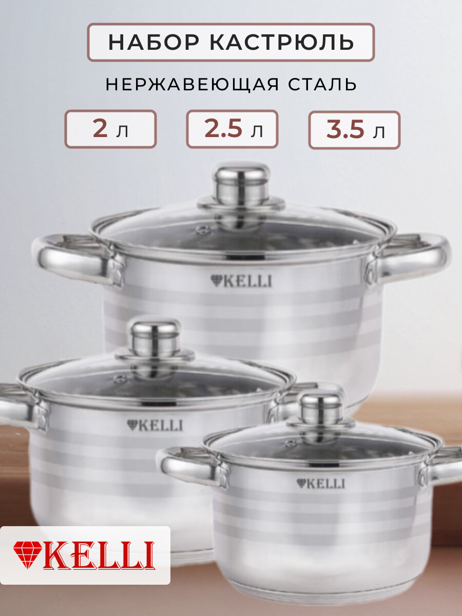 Набор посуды Kelli KL-4701 6 предметов объём 1,8л 2,5л 3,5л