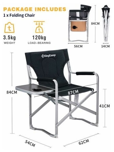 Туристическая мебель Кресло туристическое раскладное со спинкой KingCamp KC3821 DIRECTOR CHAIR, 62х54х41/84 см