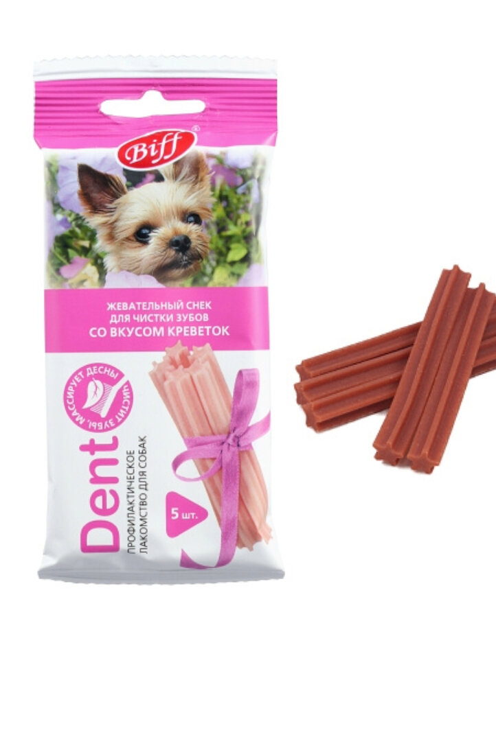 Корм для собак Biff 35г Dent снек для чистки зубов со вкусом креветок для собак мелких пород