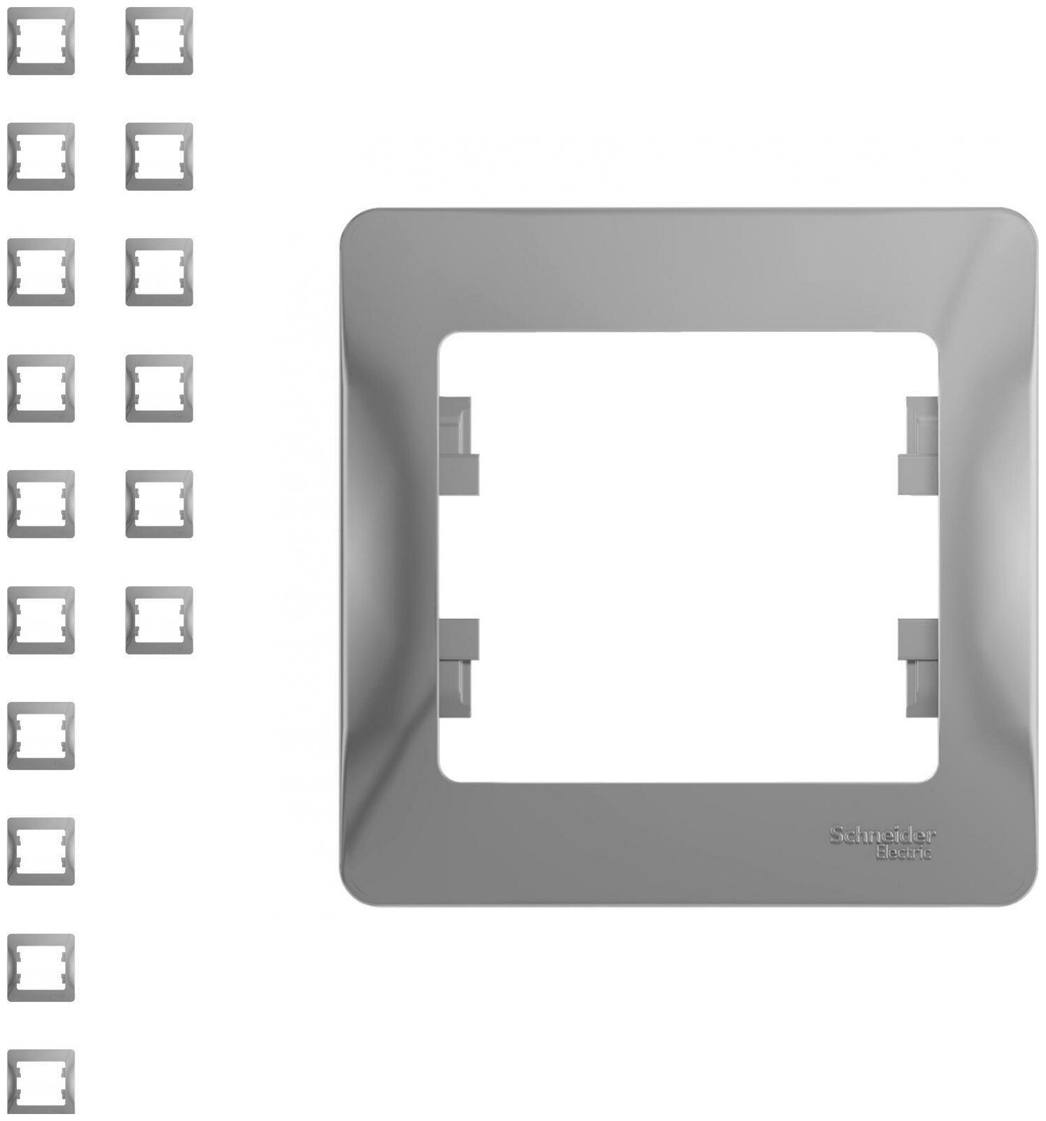 Рамка для розетки / выключателя Рамка Schneider Electric Glossa одноместная горизонтальная алюминий (комплект из 16 шт)