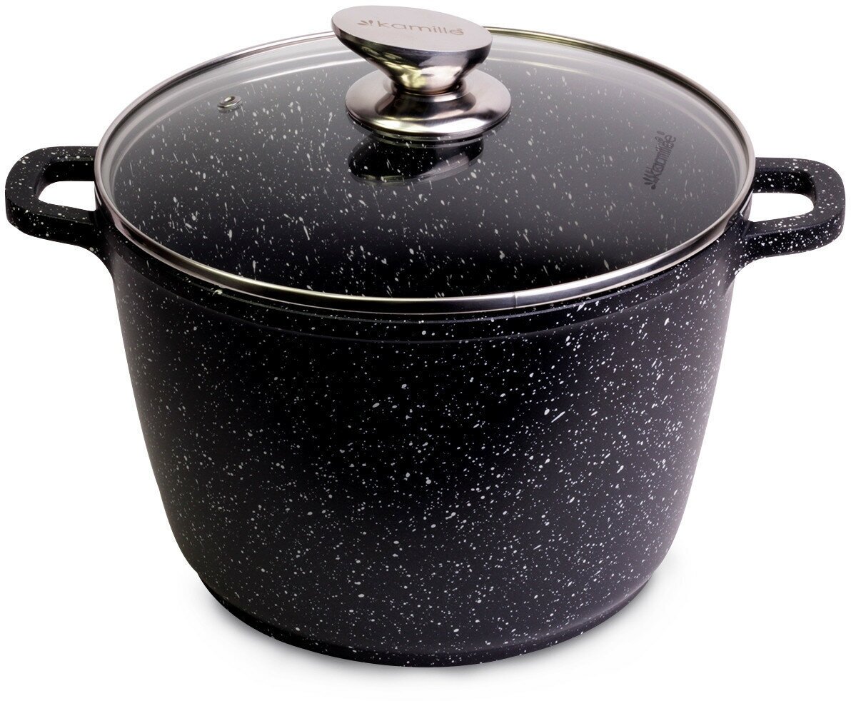 Кастрюля 6,2 л. из литого алюминия Kamille KM 4407 с мраморным покрытием (6,2 л. / черный)