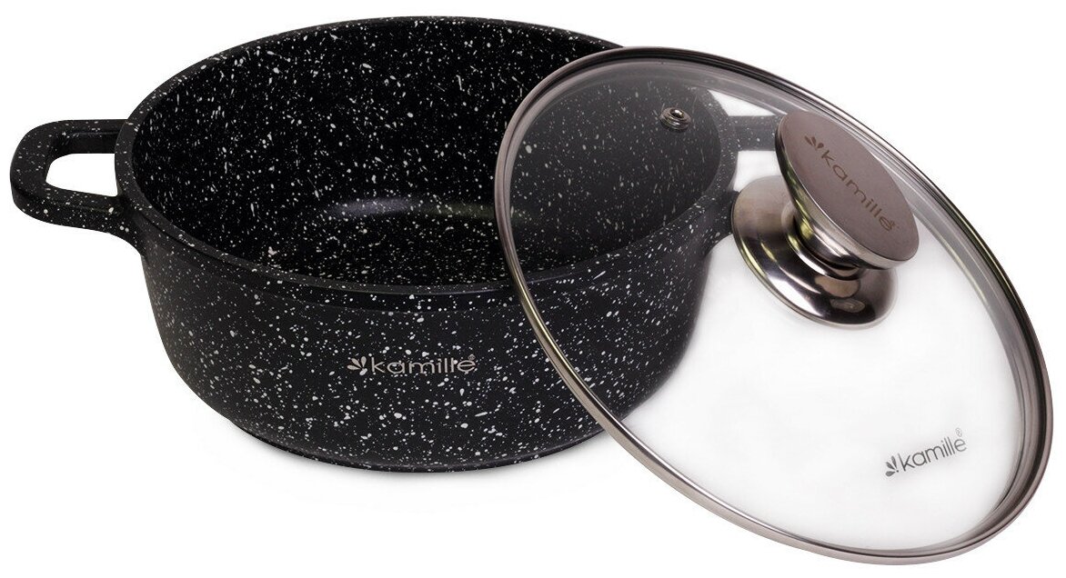 Кастрюля 4,5 л. из литого алюминия с покрытием черный мрамор Kamille KM-4405 (24х11,5 см) (4,5 л. / черный)