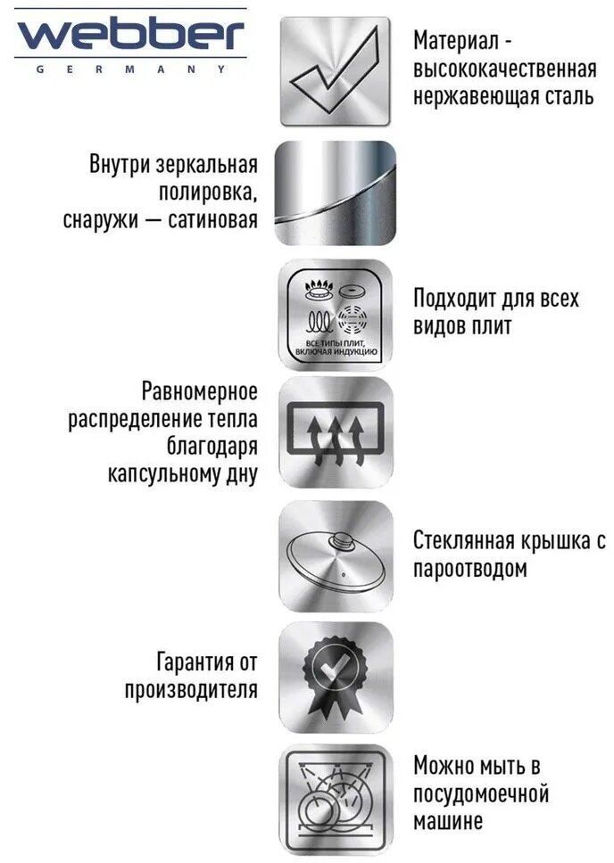 Webber BE-128-10L Кастрюля из нержавеющей стали 10 литров, 24x21см 0R-00006128