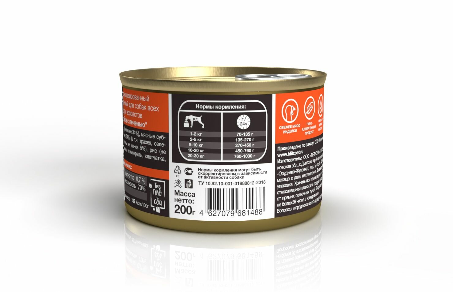Корм для собак Blitz Sensitive консервы для собак всех пород с чувствительным пищеварением, с индейкой и печенью - 200 г х 24 шт