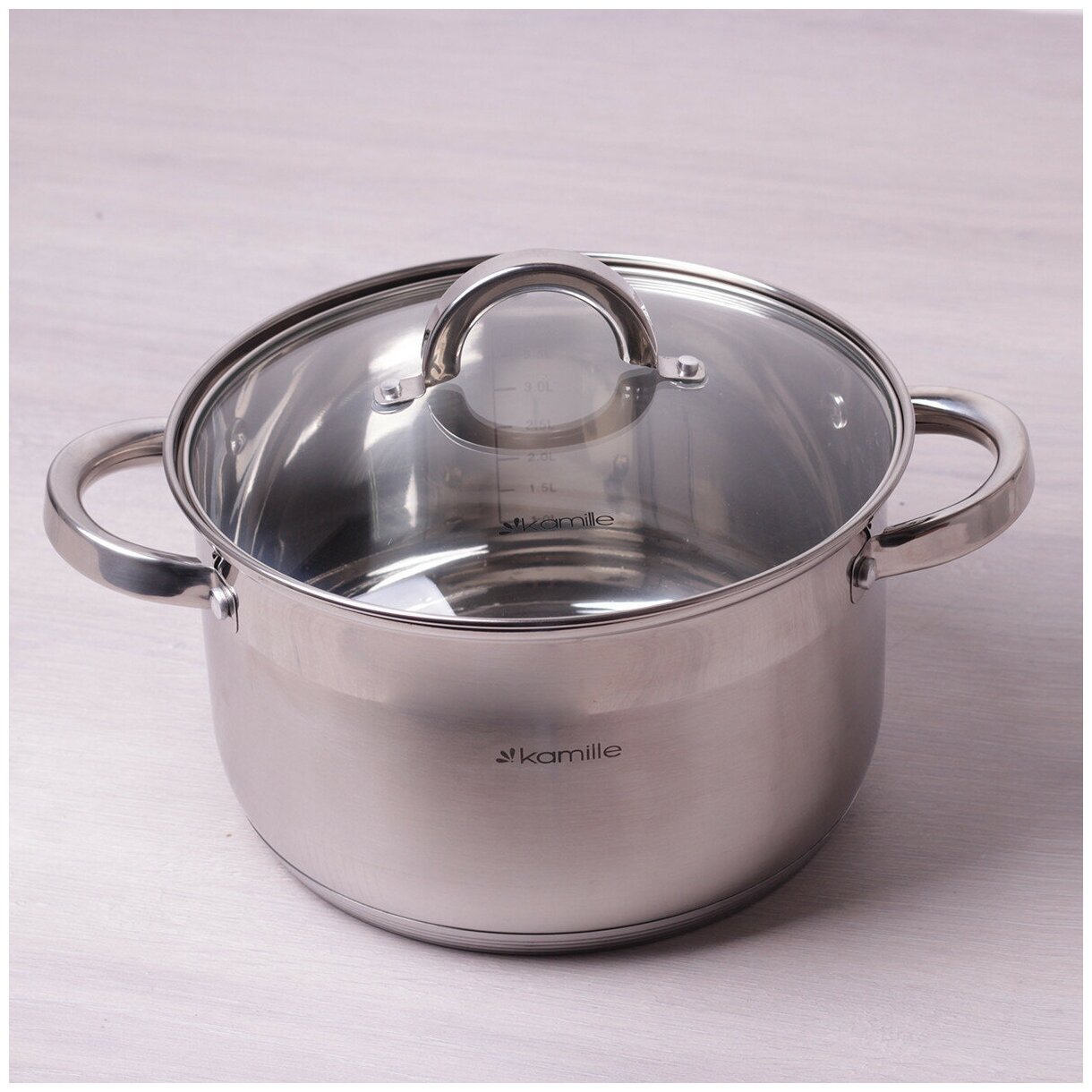 Кастрюля 5,1 л. из нержавеющей стали с крышкой Kamille KM-5622S (5622S / серебристый)