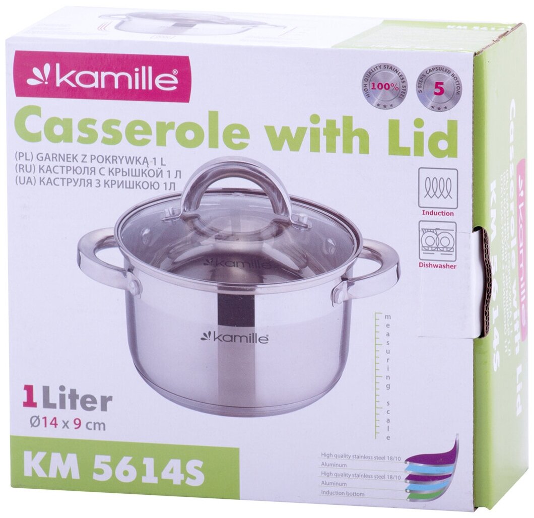 Кастрюля 5,1 л. из нержавеющей стали с крышкой Kamille KM-5622S