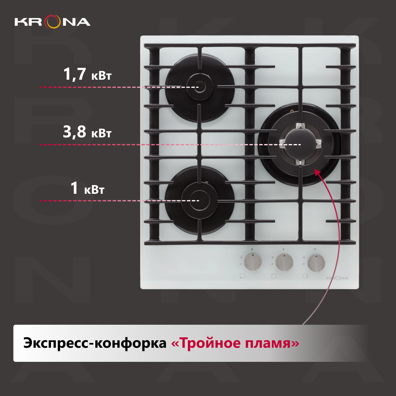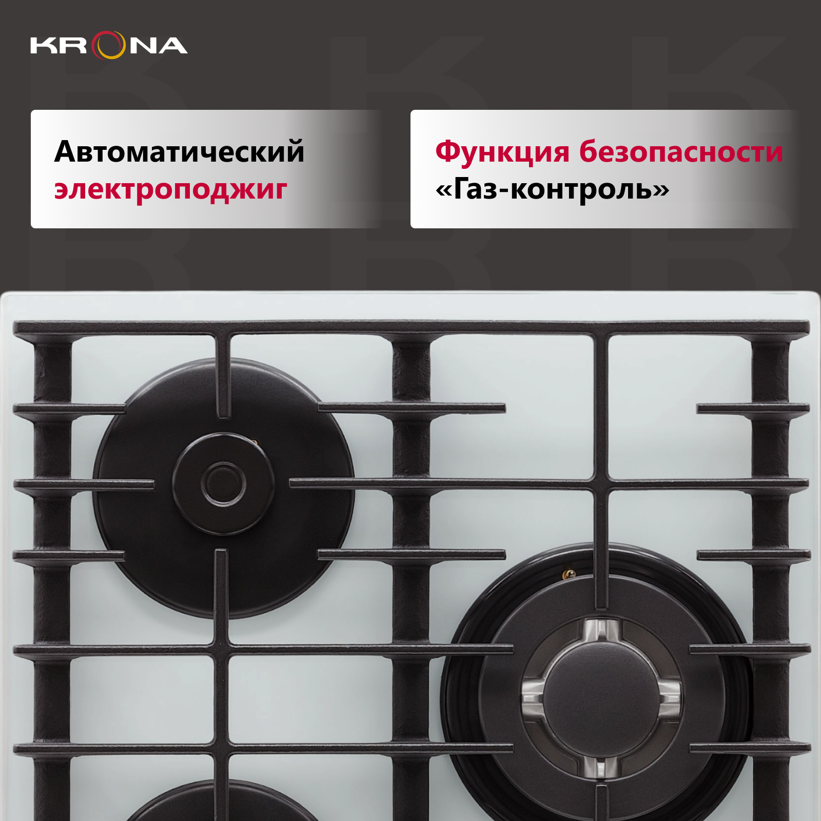 Варочные поверхности Газовая варочная панель Krona HAGEL 45 WH W