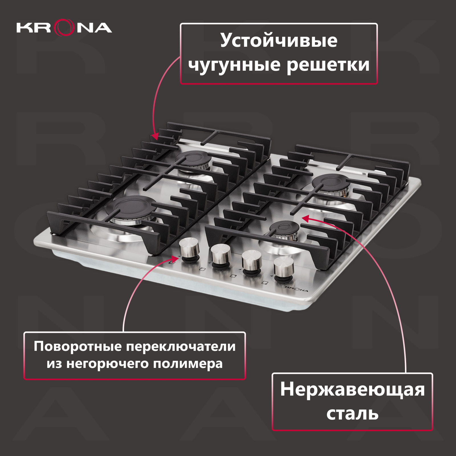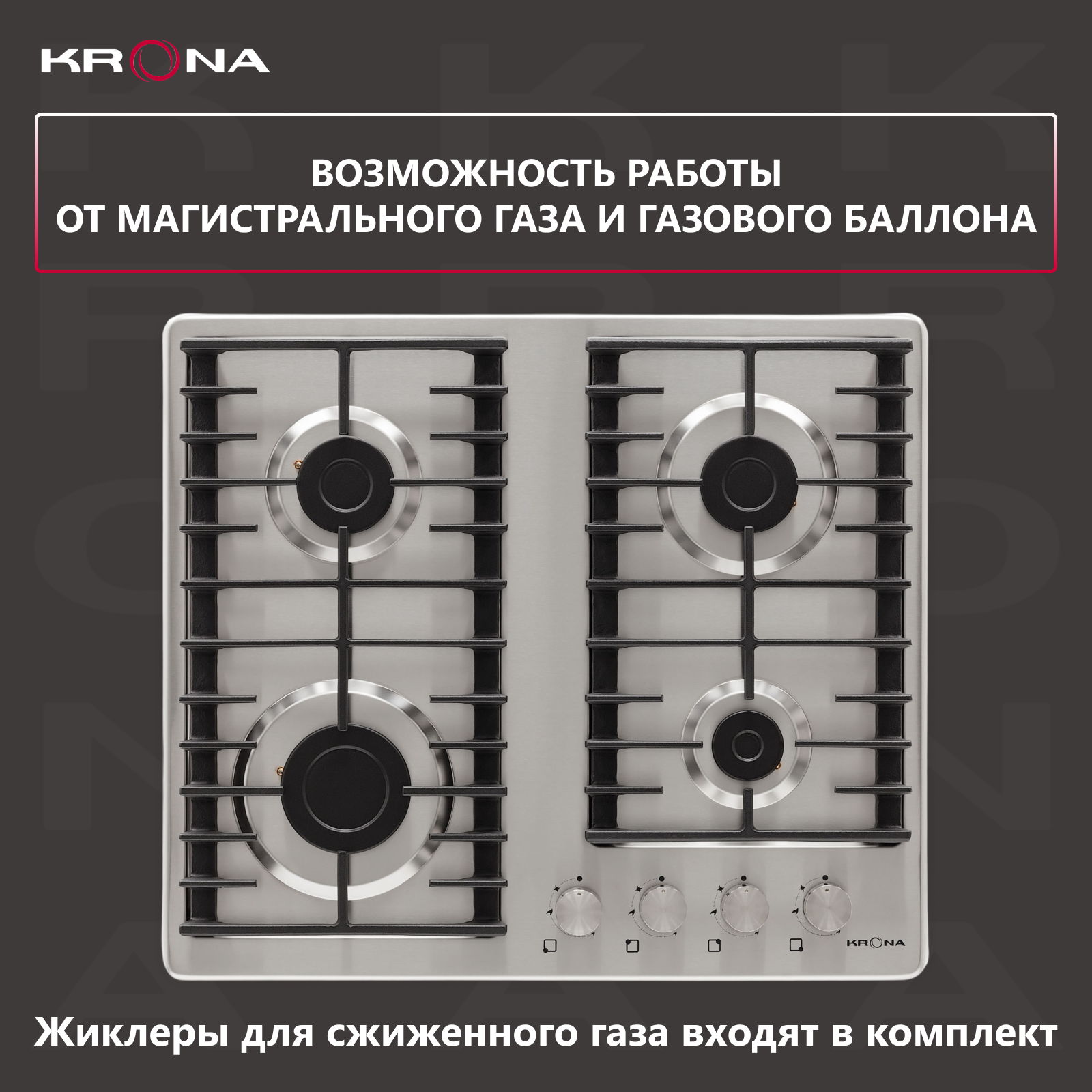 Варочная поверхность KRONA PARTITA 30 IX встраиваемая газовая (независимая) нержавеющая сталь