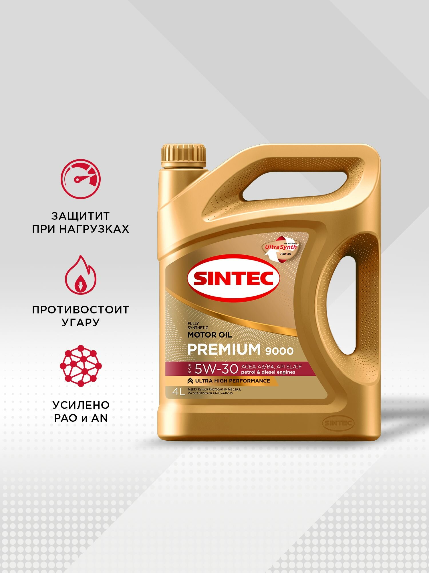 Моторные масла Моторное масло SINTEC PREMIUM 9000 SAE 5W-30 API SL, ACEA A3/B4 Синтетическое 4 л
