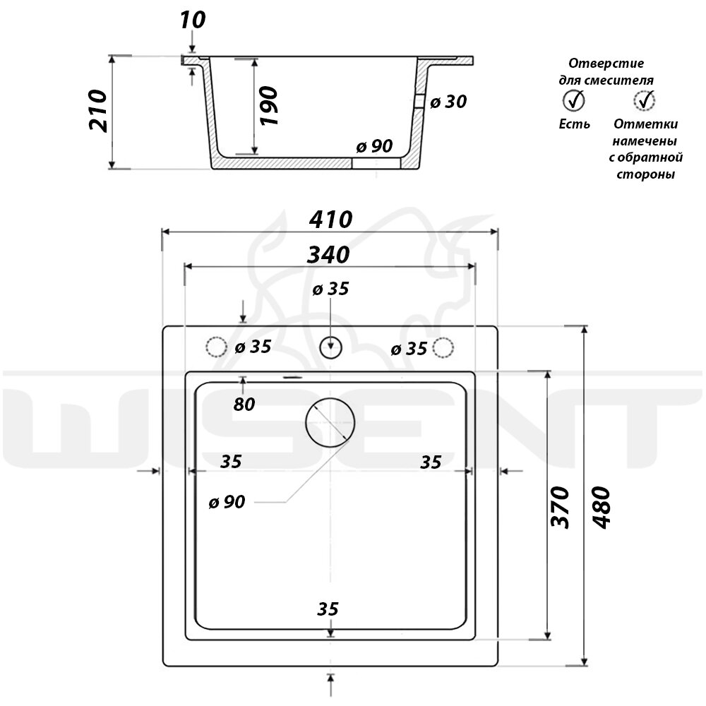 Отверстие под смеситель | + |