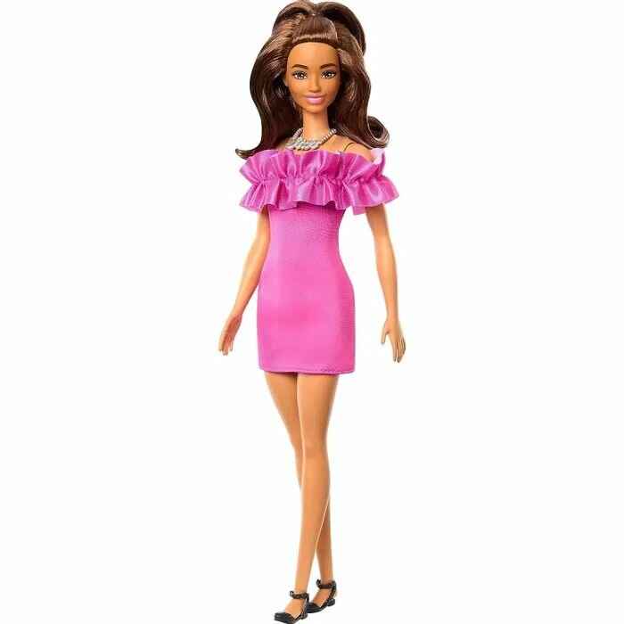 Куклы Кукла Barbie Fashionistas Розовое платье с оборками на рукавах HRH15