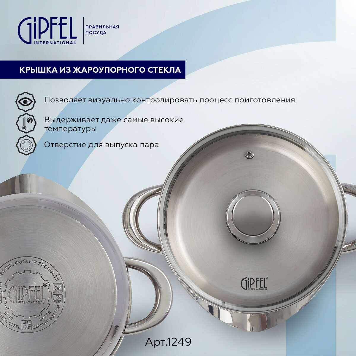 Кастрюли Кастрюля из нержавеющей стали Gipfel Cocktail 1249 24 см/4,5 л стальной
