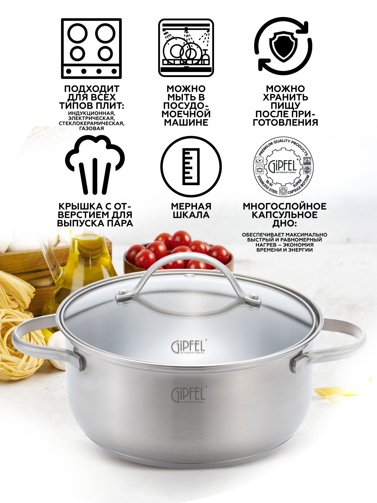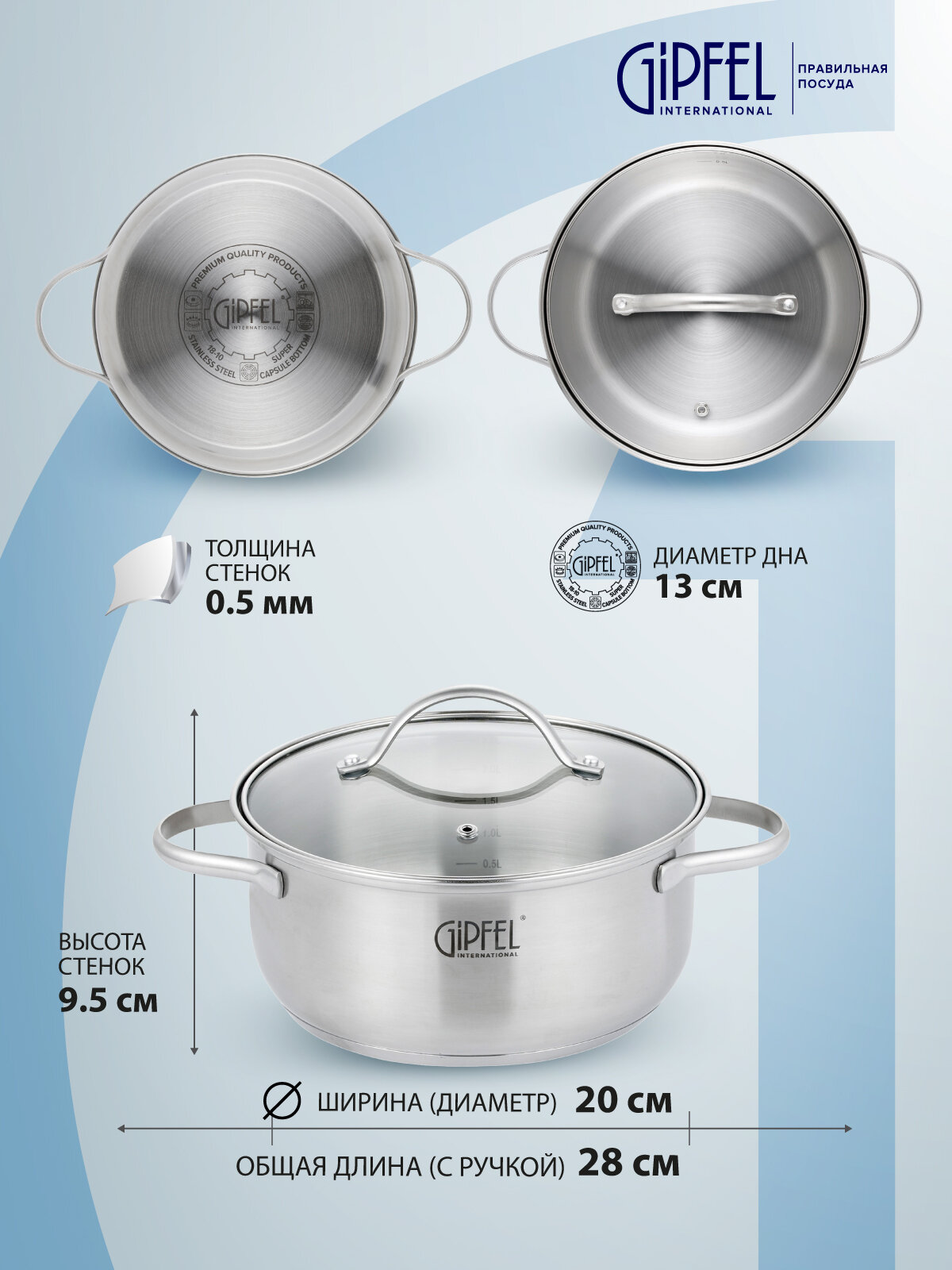 Кастрюли Кастрюля из нержавеющей стали Gipfel Azalea 51060 20 см/2,5 л стальной