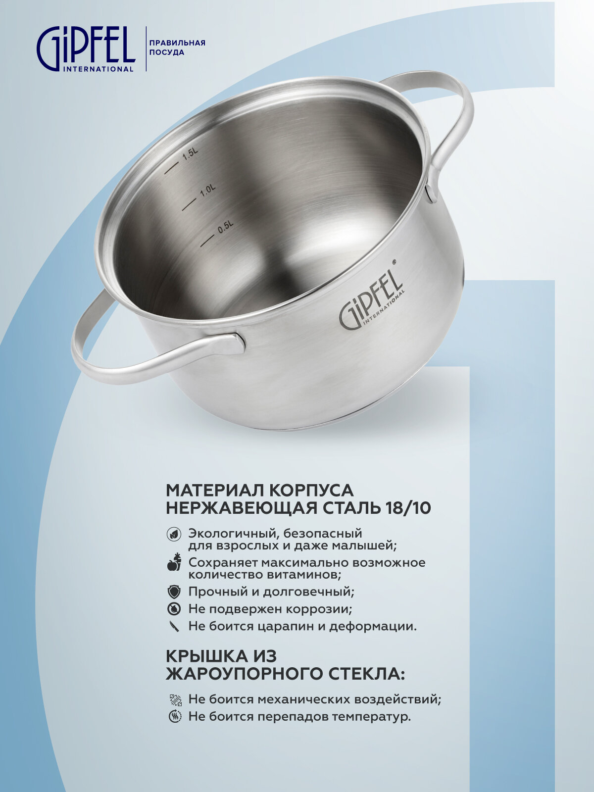 Кастрюли Кастрюля из нержавеющей стали Gipfel Azalea 51059 16 см/1,5 л серебристый