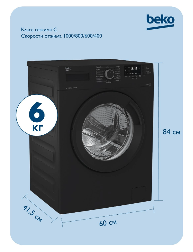 Стиральная машина Beko WSRE6512ZAA, до 6 кг, черный