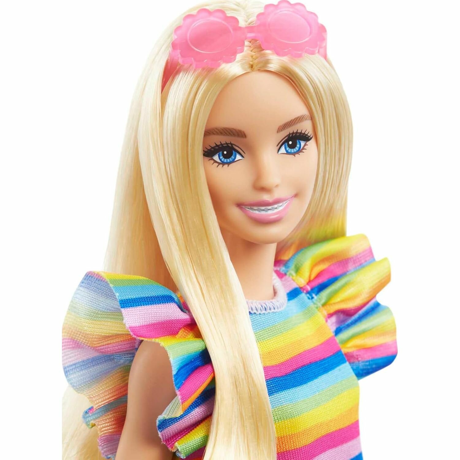 Куклы Кукла Barbie Игра с модой HJR96 блондинка с брекетами в радужном платье № 197 Барби Mattel