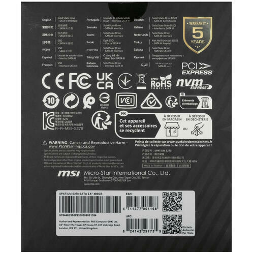 MSI SPATIUM S270 SATA 2.5" S78-440E350-P83 480 ГБ