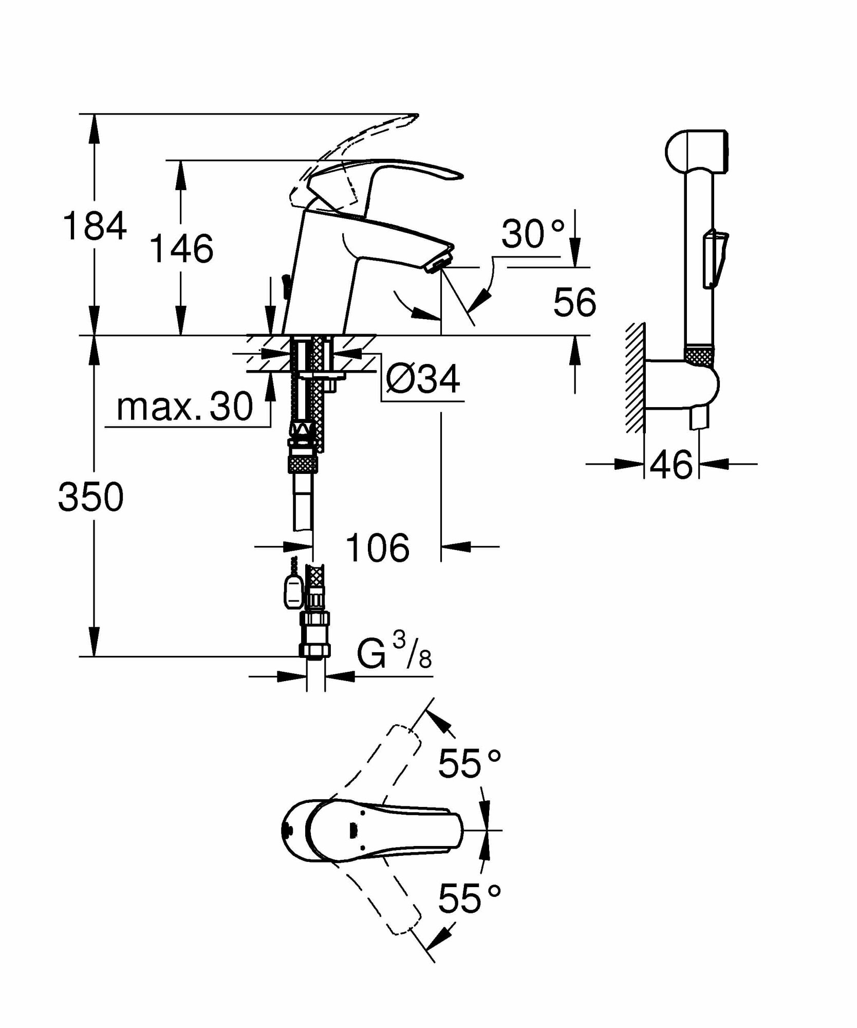 Смеситель для раковины с гигиеническим душем GROHE Eurosmart 23124 002 (23124002) хром