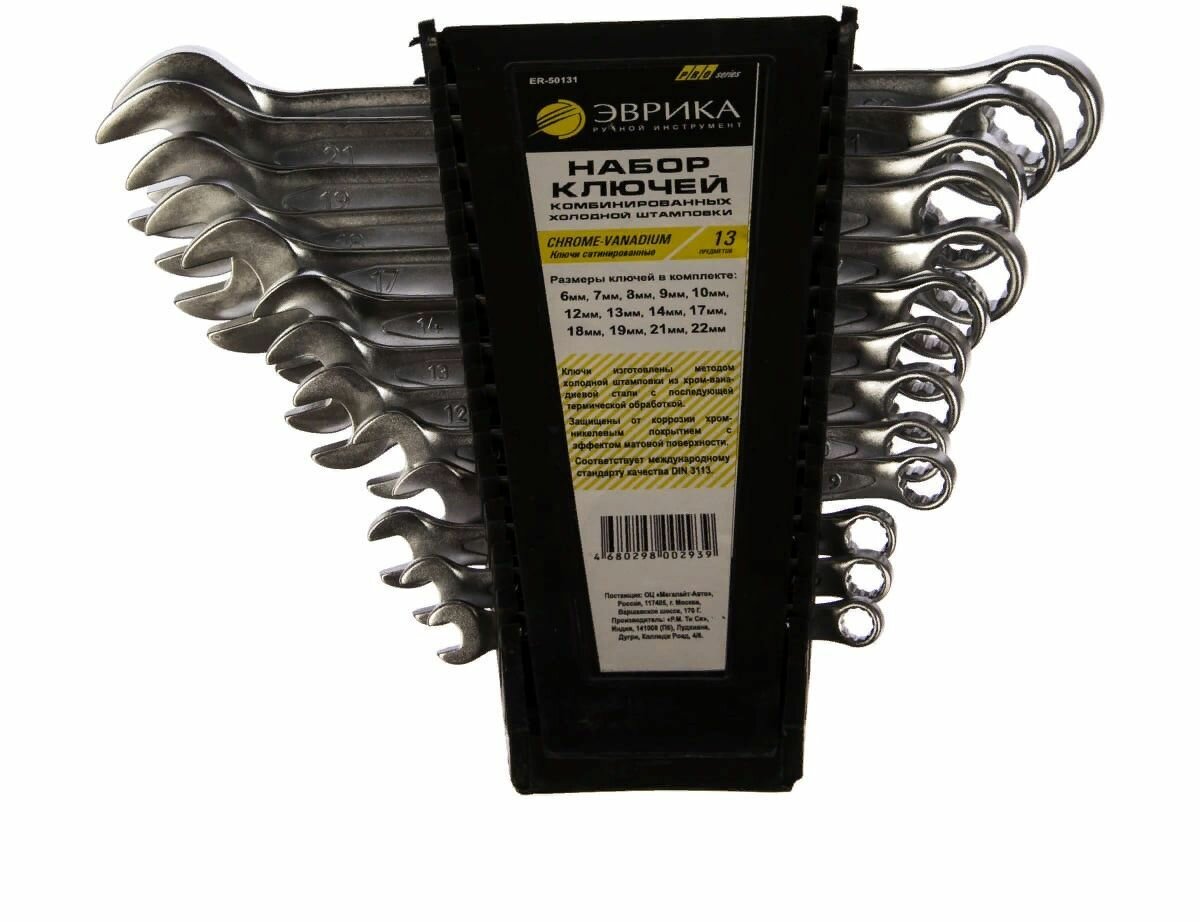 Набор ключей комбинированных 6-22мм 13 предметов в холдере CrV Pro, ER-50131, эврика