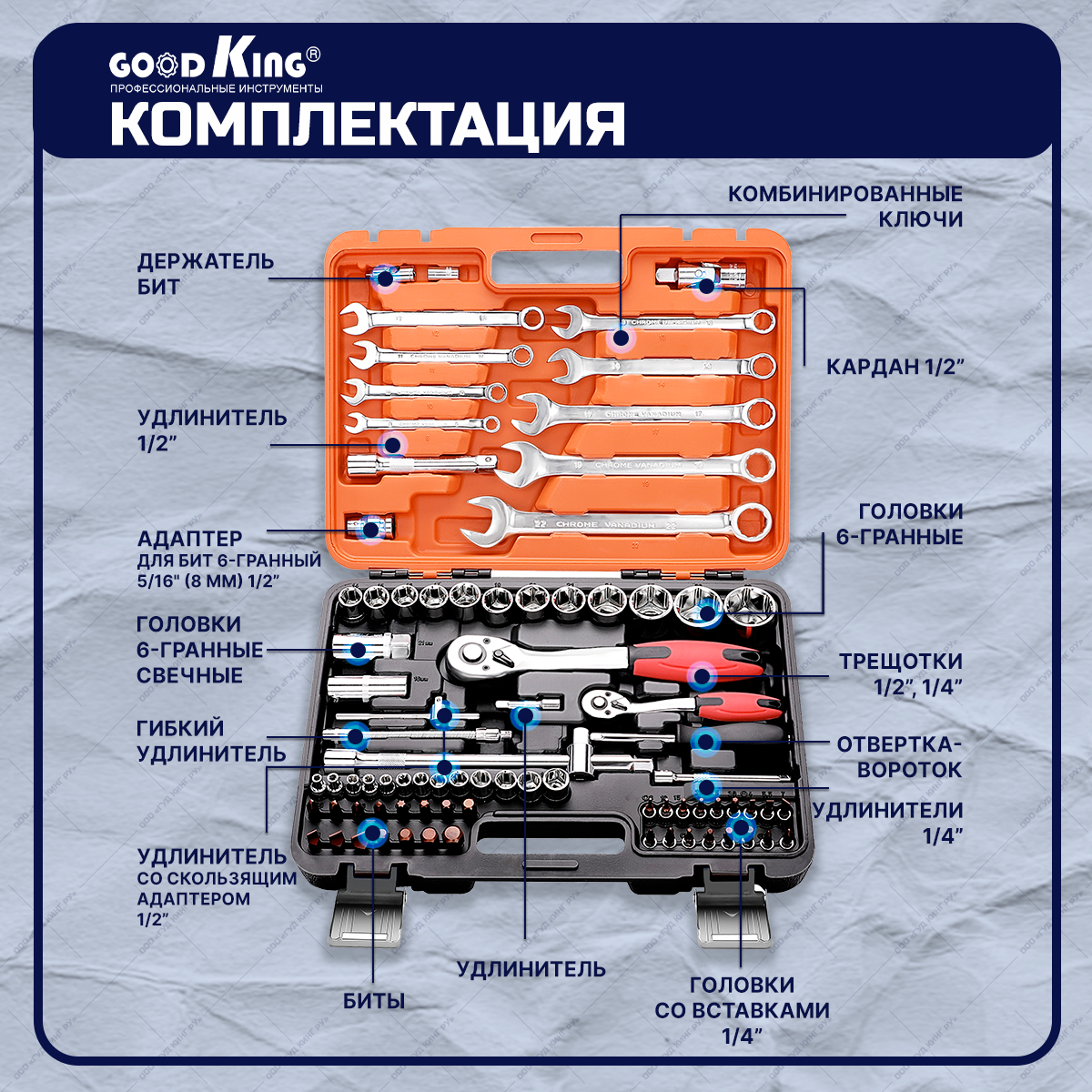 Наборы инструментов Набор инструментов, GOODKING,82 предмета, набор торцевых головок, набор комбинированных ключей (K-10082)