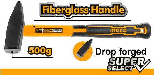 Молоток слесарный, 45 углеродистая сталь, фиберглассовая рукоятка, 500гр, INGCO HMH880500