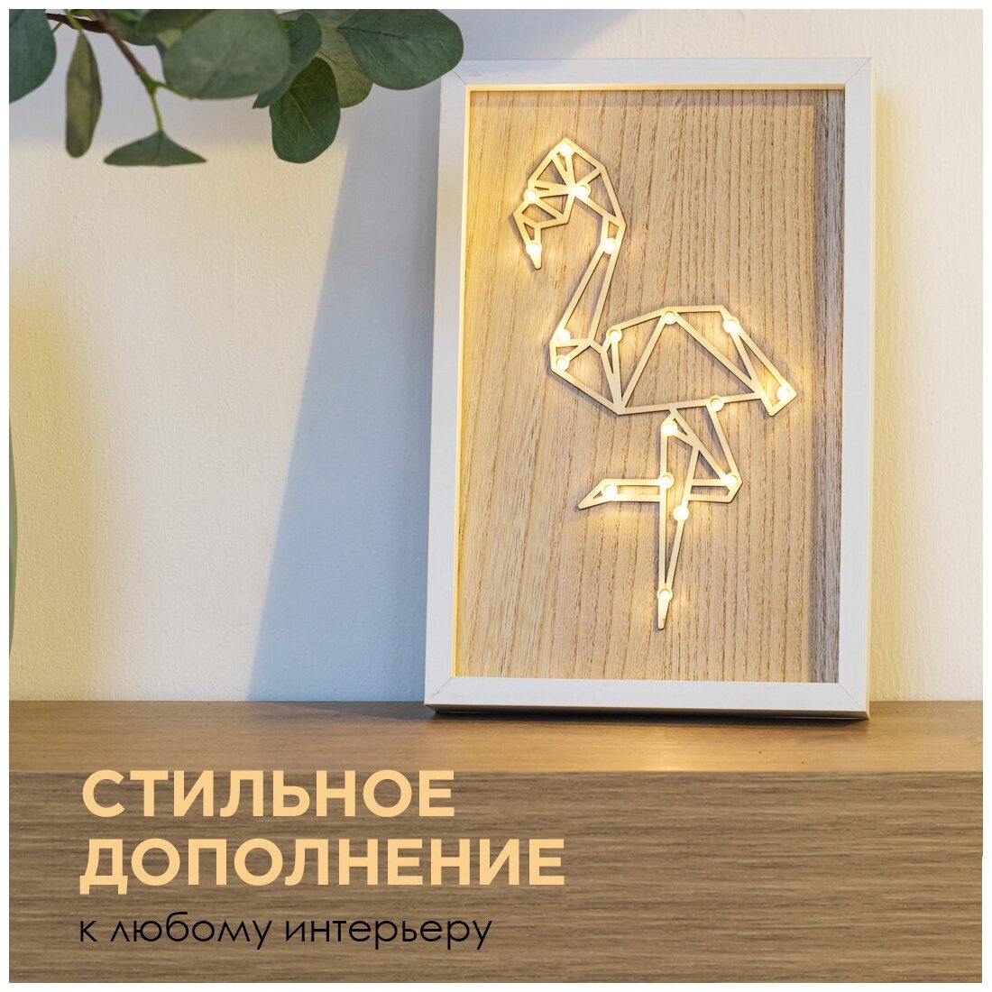 Настольная лампа Светодиодный ночник "Фламинго" 12-178, теплый белый, 2хАА, МДФ, 300х200х40мм