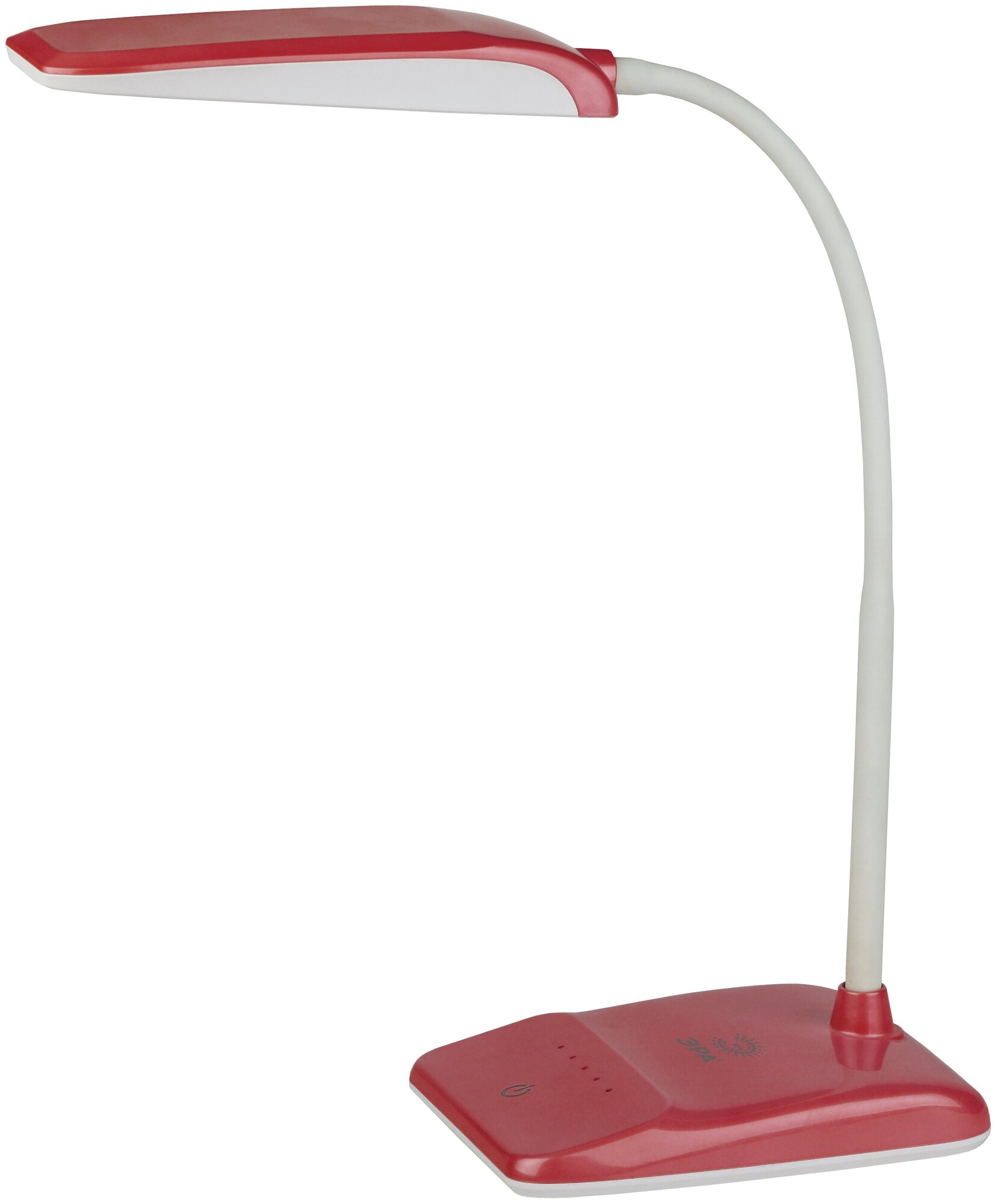 Лучшие цены. Настольный светильник ЭРА NLED-447-9W-R со светодиодами (LED) в качестве источников света. Осветительный элемент встроен в конструкцию и не требует приобретения дополнительных лампочек. Светильник оснащен сенсорным управлением с возможностью регулировки яркости освещения, 4 уровня. Гибкая стойка позволяет настраивать комфортную высоту плафона и направлять свет под любым углом. Современный дизайн в стиле хай-тек. Магазины в вашем городе.