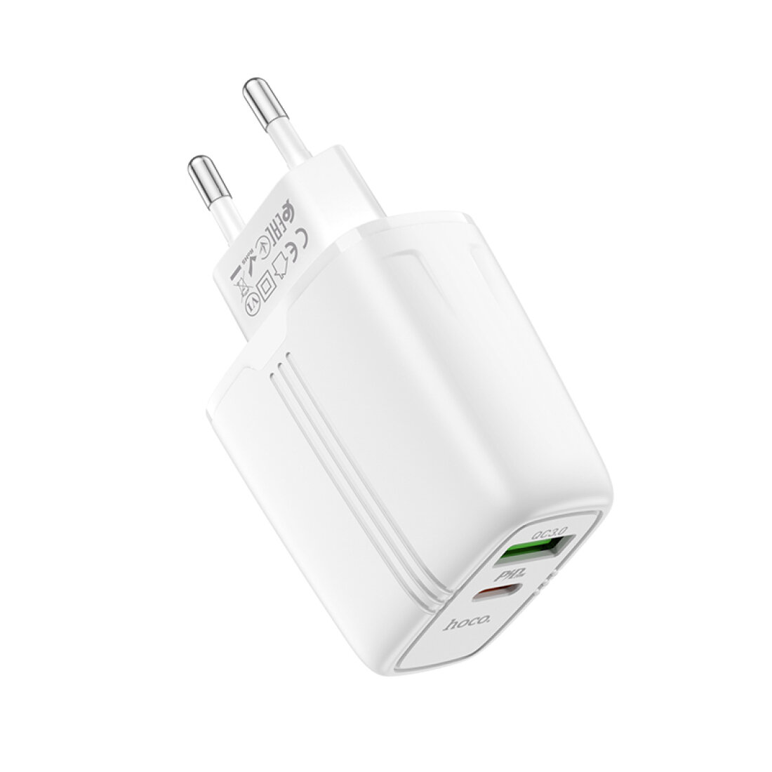 Зарядное устройство Сетевое зарядное устройство, 1 USB 3.0 QC+1 PD 20W (N11), HOCO, Безопасный сертификат, Type-C to Lightning, белая