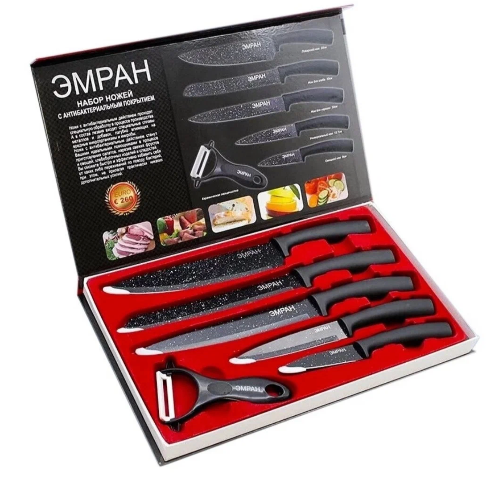 Набор кухонных ножей эмран с антибактериальным покрытием / Набор из 6 предметов, KW-00337