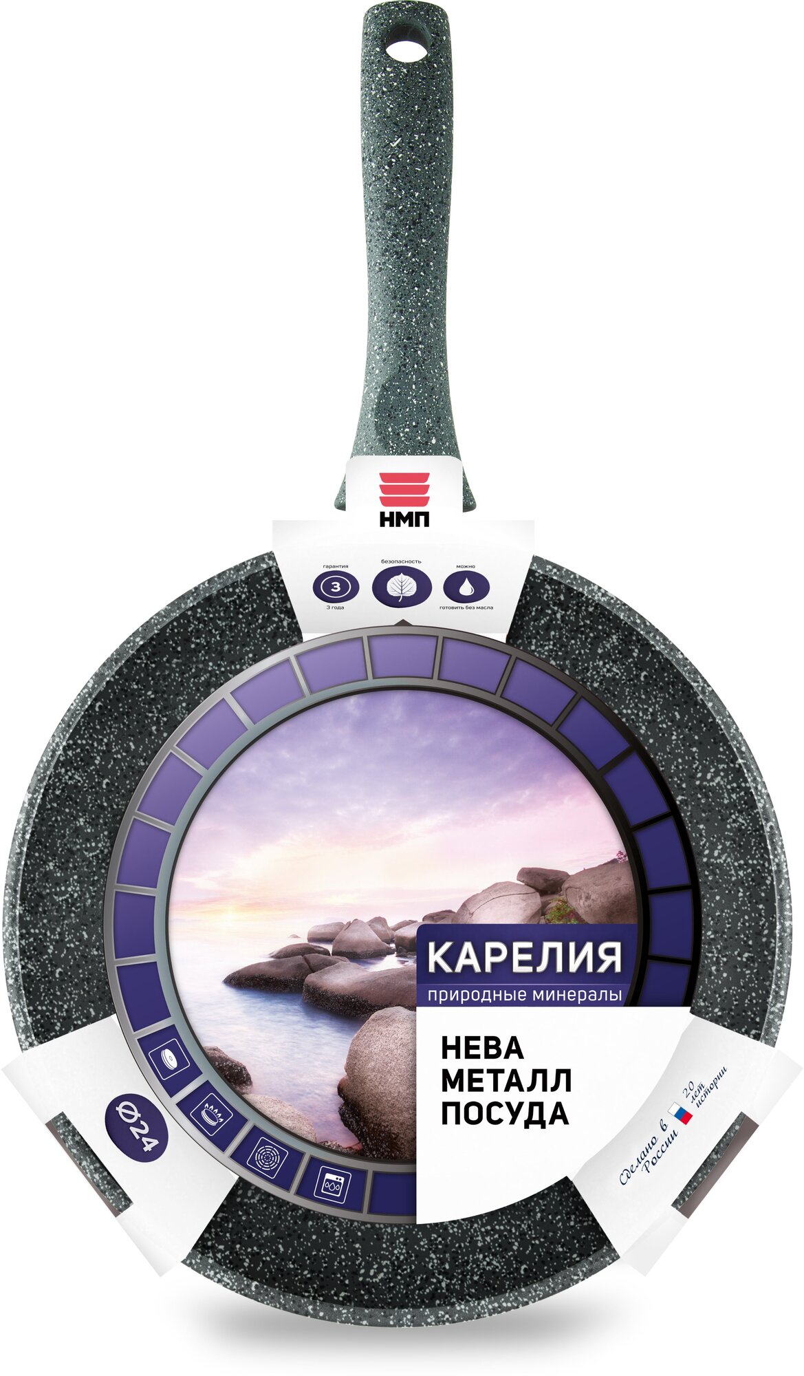 Сковорода Нева Металл Посуда НМП "Природные минералы" линия "Карелия" 24 см (2324)