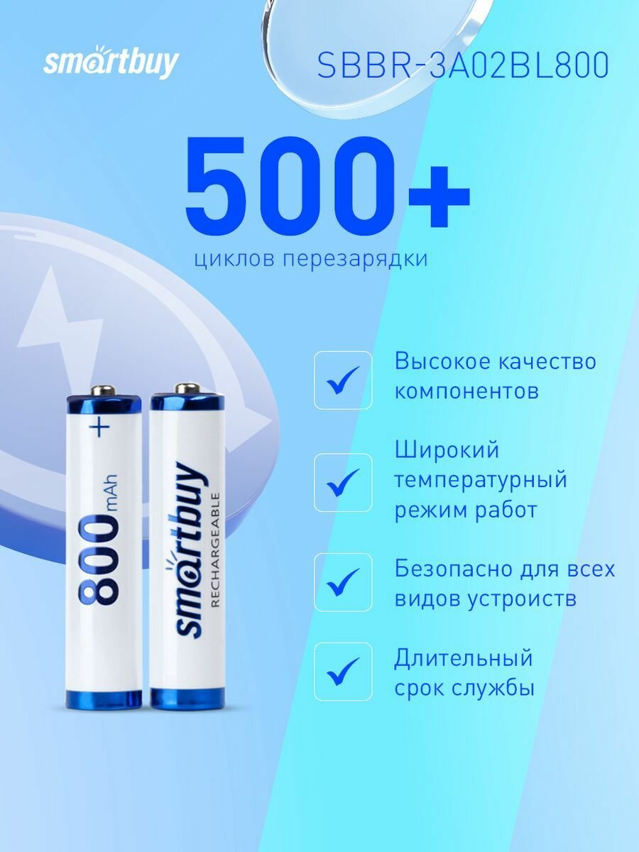 Аккмуляторы SMARTBUY (SBBR-3A02BL800) - 800 mAh 2 шт.