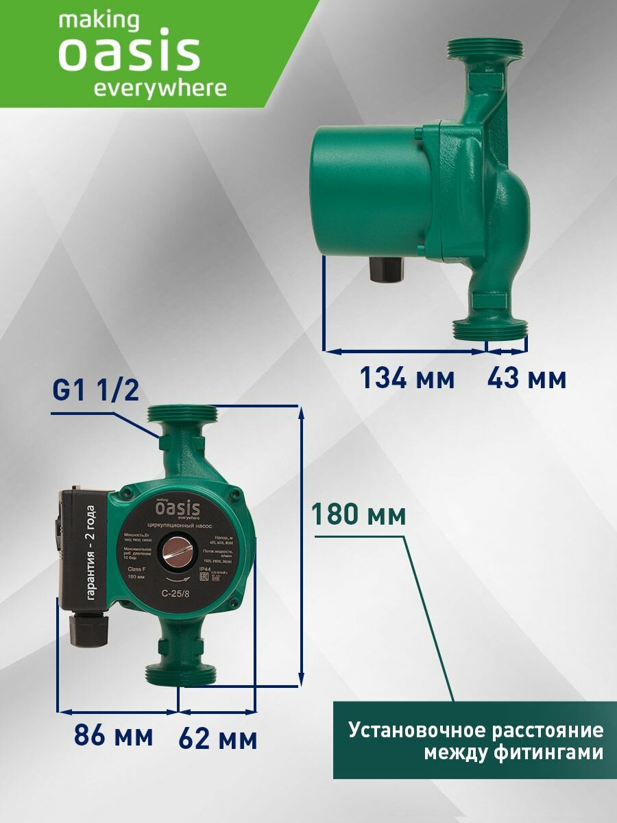 Циркуляционные насосы Насос циркуляционный для отопления making Oasis everywhere C-25/8, 100 Вт, напор 8 м, 35 л/мин