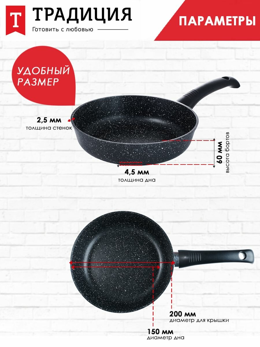 Сковорода традиция ТП2261И антипригарное покрытие, литая, 26 см, черный