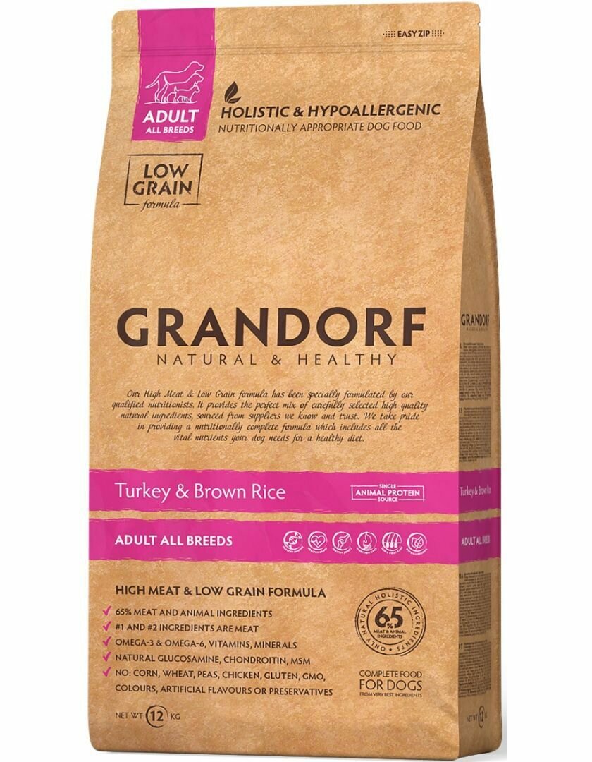 Сухой корм для собак GRANDORF, индейка, бурый рис, 3кг