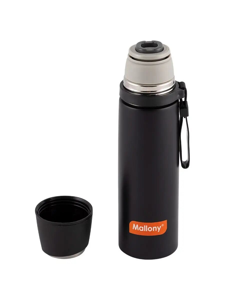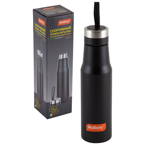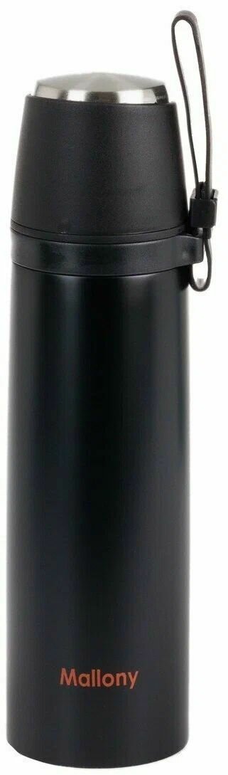 Термос спортивный Mallony NERO, 0,35 л, с чашкой и силиконовым ремешком для переноски