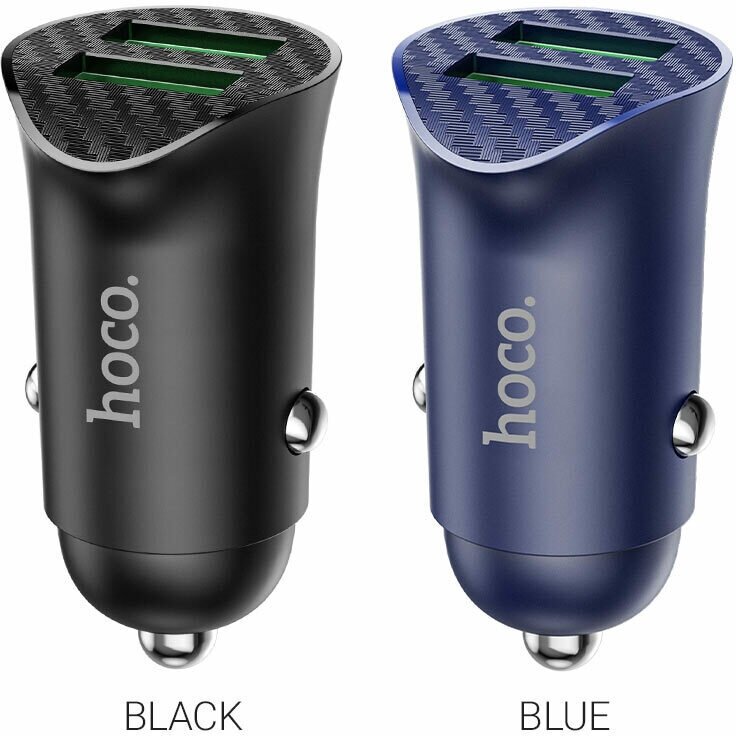 Автомобильное зарядное устройство (от прикуривателя) HOCO Z39 QC3.0, два порта USB, 18W синий, 6931474735034