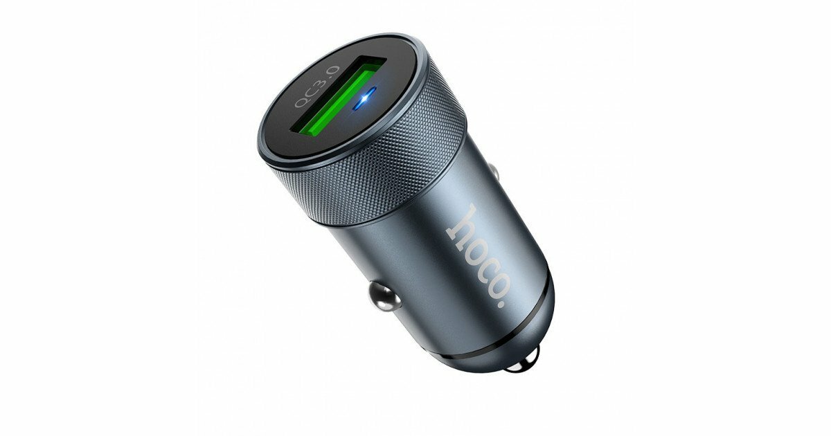 Зарядное устройство а/м 12V -> USB 5V hoco Z32 3000mA, QC3.0, металл, чёрное