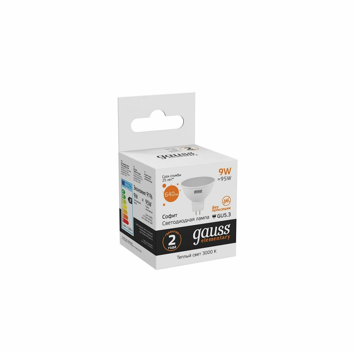 GAUSS 13619 Светодиодная лампа LED Elementary MR16 GU10 9W 640lm 3000К 1 10 100 0
