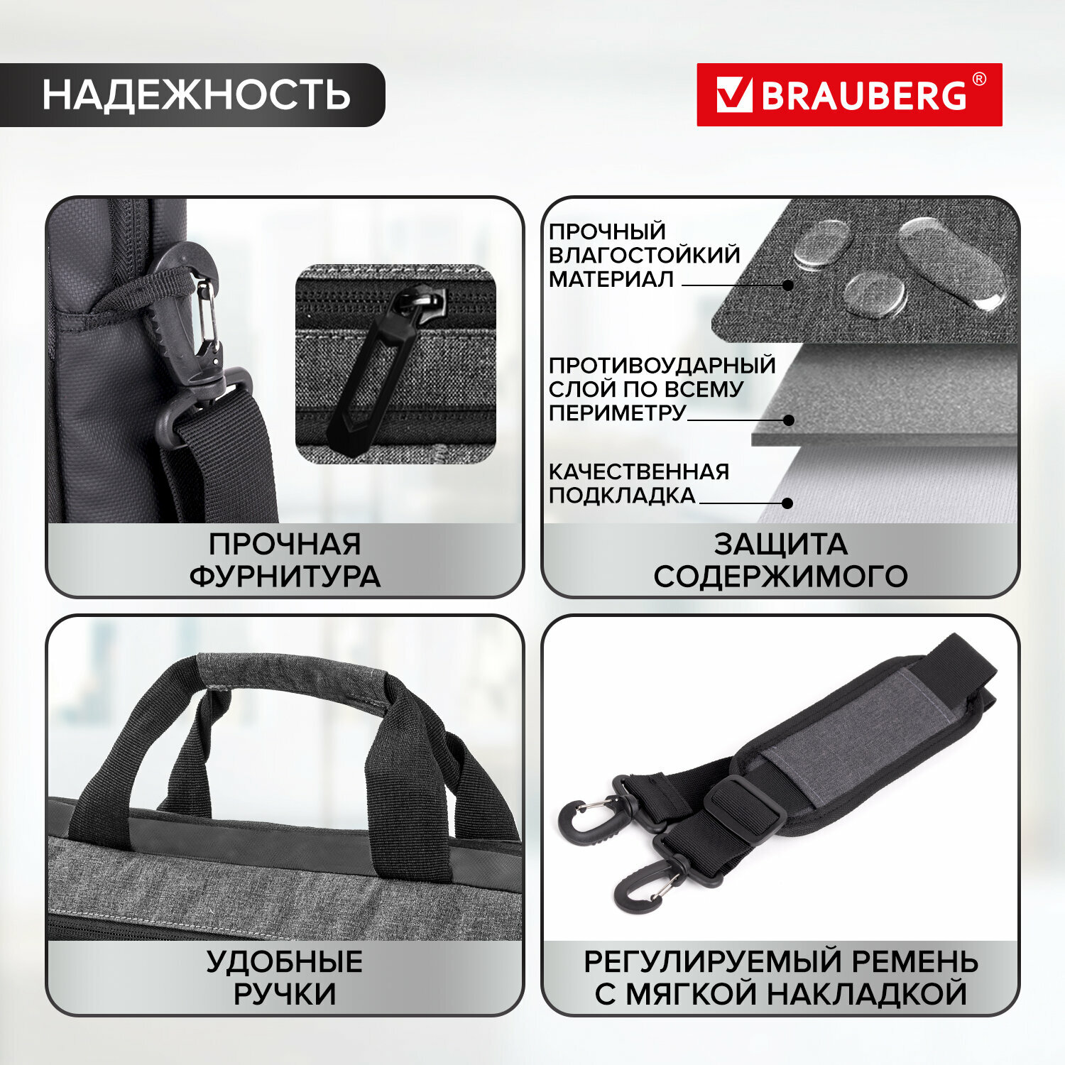 Сумка-портфель Brauberg "Forward с отделением для ноутбука 15,6, темно-серая, 29х40х9 см, 270832