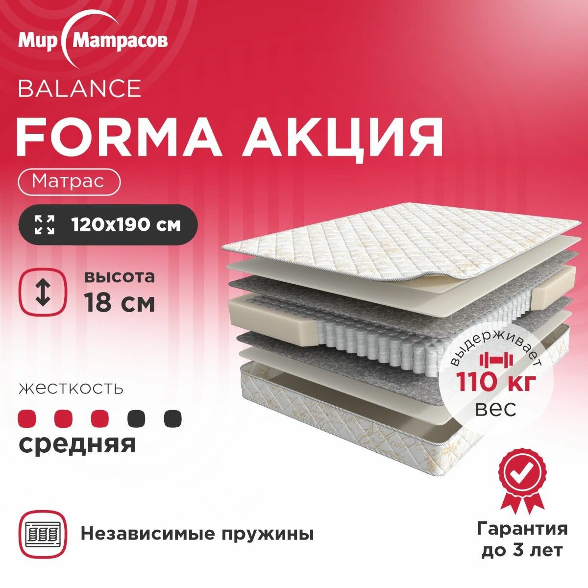 Матрасы Анатомический матрас, Ортопедический матрас Мир Матрасов Balance Forma Акция, Независимые пружины 120x190 см
