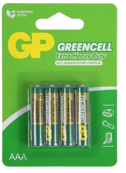 GP Батарейки "Greencell", ААА мизинчиковые, Солевые,4шт, на блистере, 1 уп