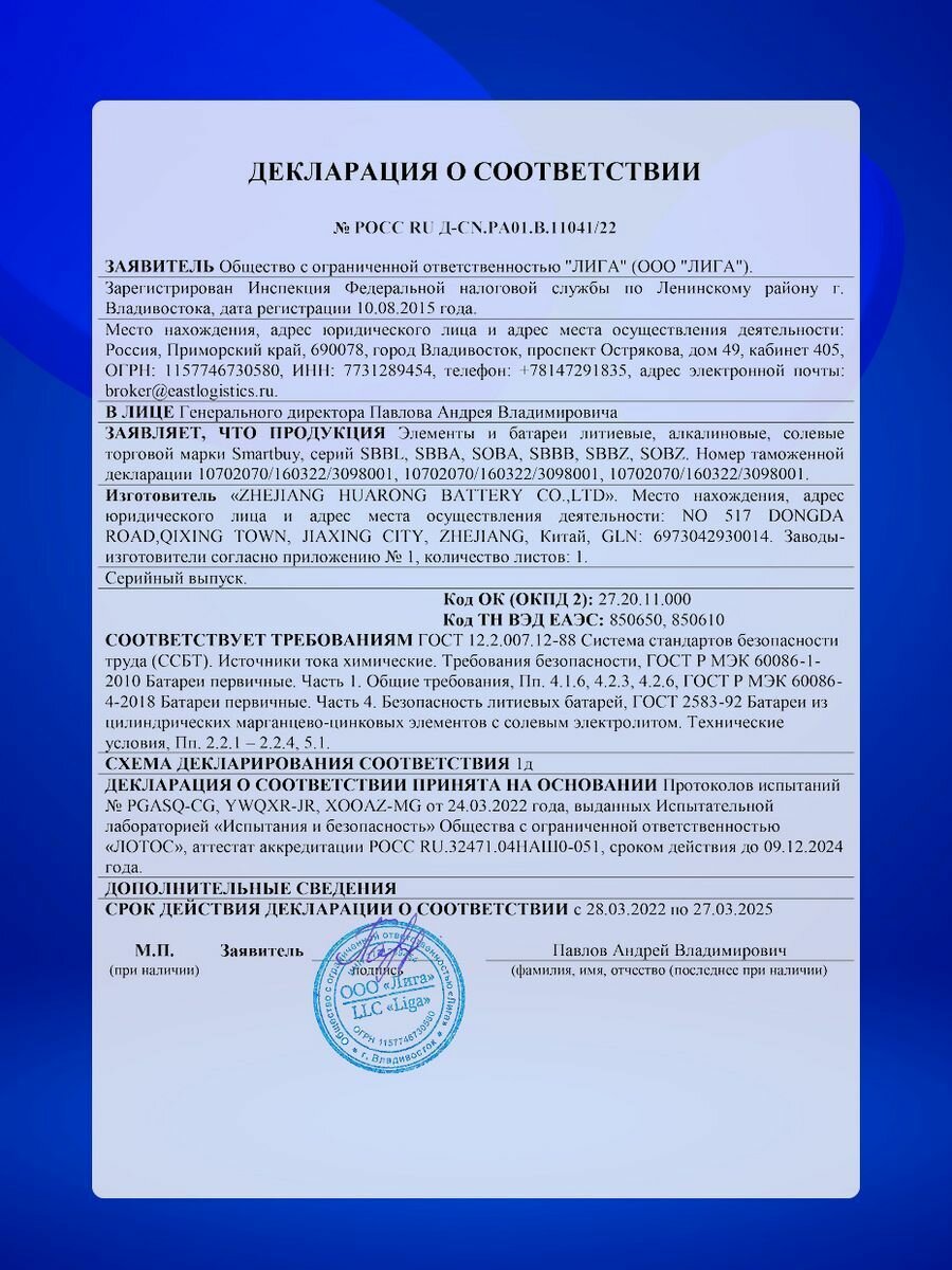 Батарейки Smartbuy SBBL-2-1B 174 ₽ Подробнее