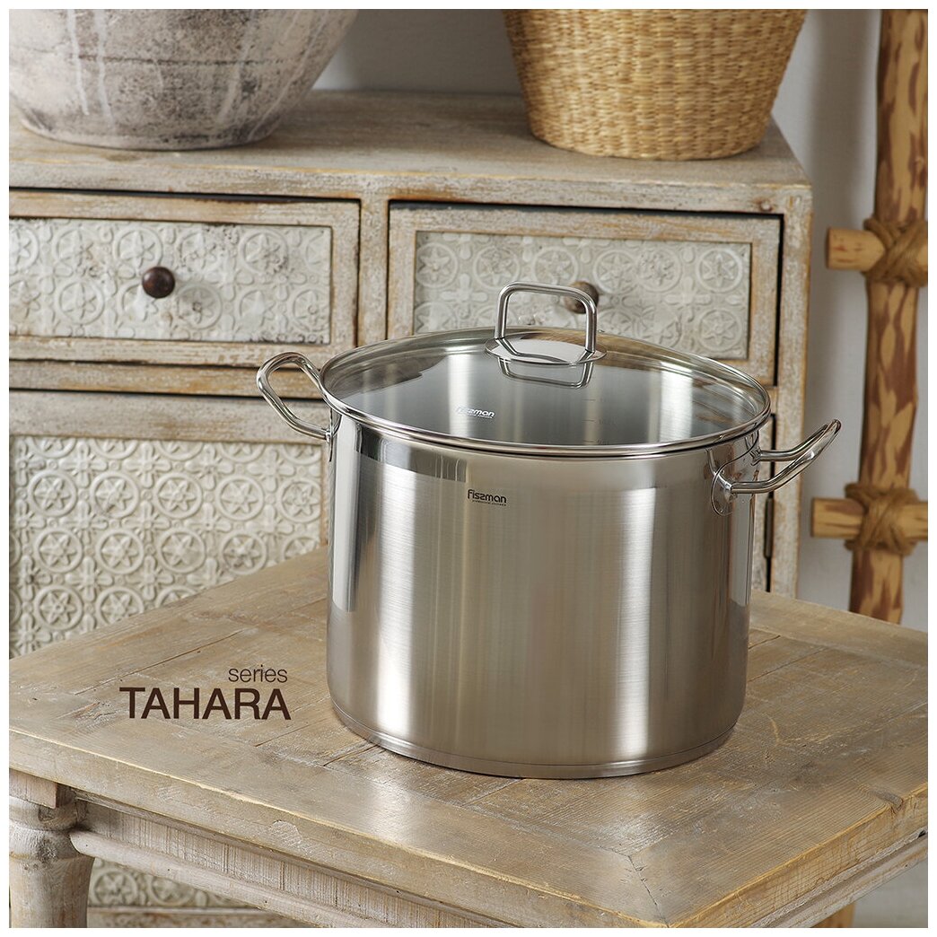 5308 FISSMAN Кастрюля TAHARA 13,2л / 28x21,5см с крышкой (нерж.сталь) Ручки-нерж.сталь; Крышка-стекло; Индукция; Термоаккумулирующее многослойное дно.