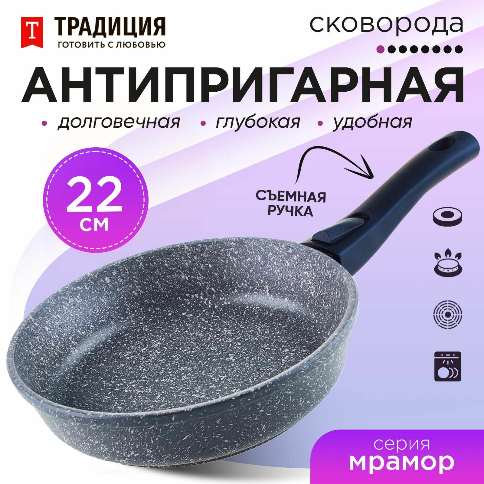 Сковородки Сковорода антипригарная литая 22см со съемной ручкой Мрамор ТМ Традиция готовить с любовью