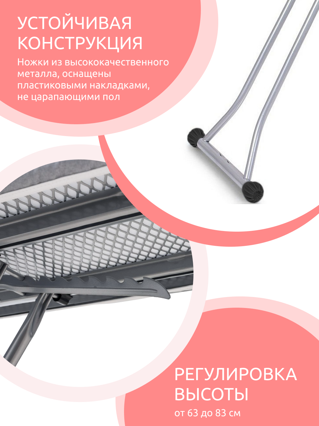 | Функции и возможности | подставка для утюга, регулировка высоты, встроенная розетка |