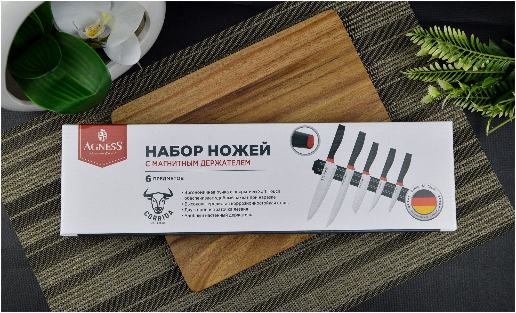 Набор ножей Набор ножей Agness 6 предметов с магнитным держателем и пластиковой ручкой, серия "Corrida"
